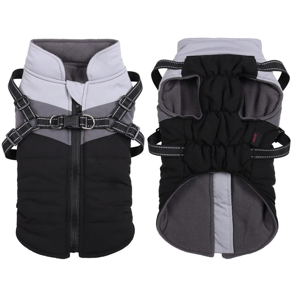 Reversible Waterproof Winter Dog Jacket with Built-In Harness Warm Coat for All Sizes